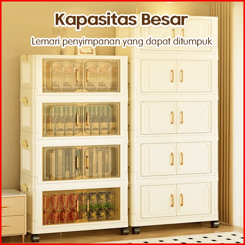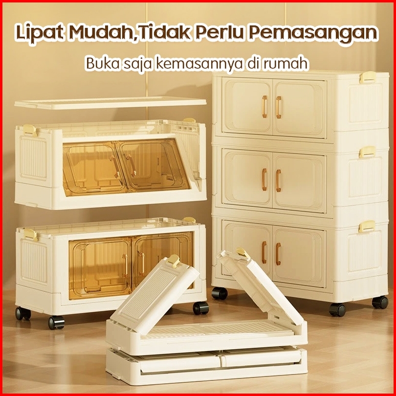 Lemari Pakaian Plastik Lemari Penyimpanan Lipat Plastik Roda Senyap Kotak Penyimpanan Anti Debu Lemari Plastik Susun