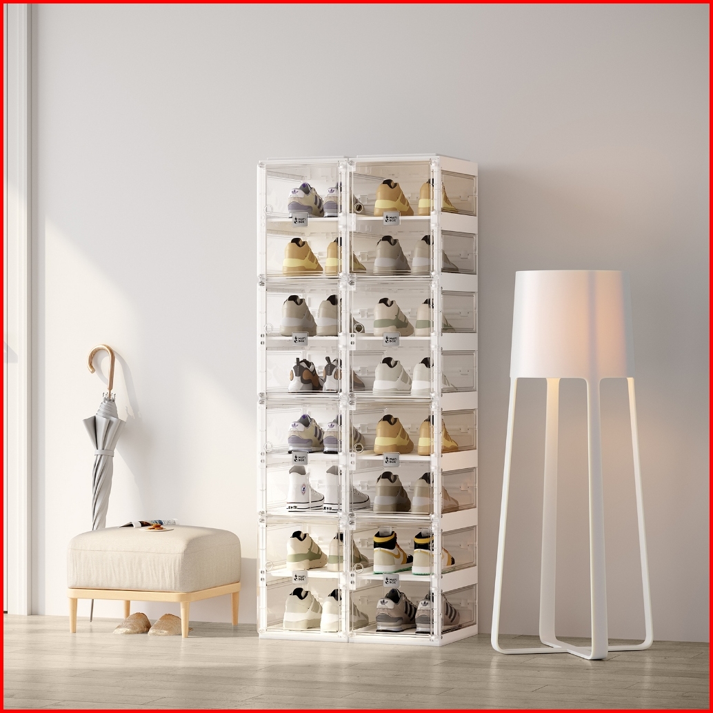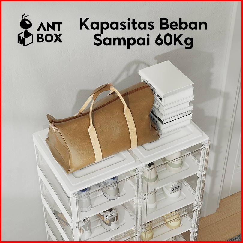 Antbox Rak Lemari Sepatu Susun 8-20 Kotak Sepatu Clear White Aesthetic Anti Debu