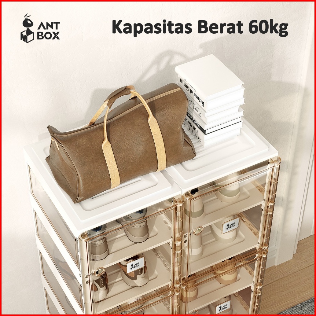 Antbox Rak Sepatu Transparan Kapasitas 8-20 Pasang Pintu Magnet Minimalis Hemat Tempat