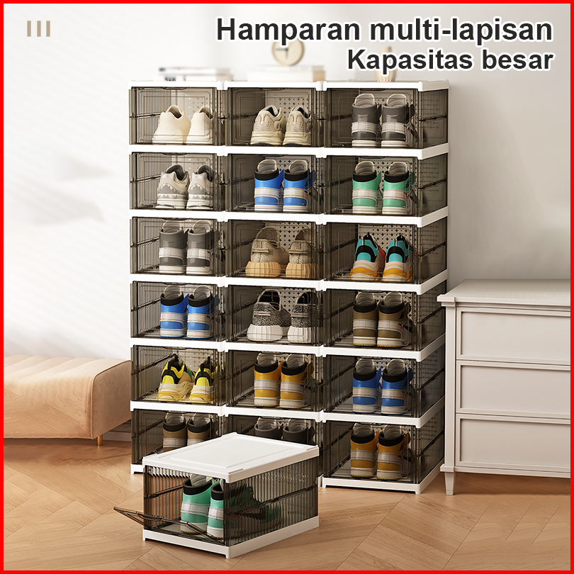 Kotak Sepatu Lipat Rak Sepatu Lipat 6 Tingkat Serbaguna Penyimpanan Vertikal Portable Rak Sepatu Susun Tertutup Lemari S