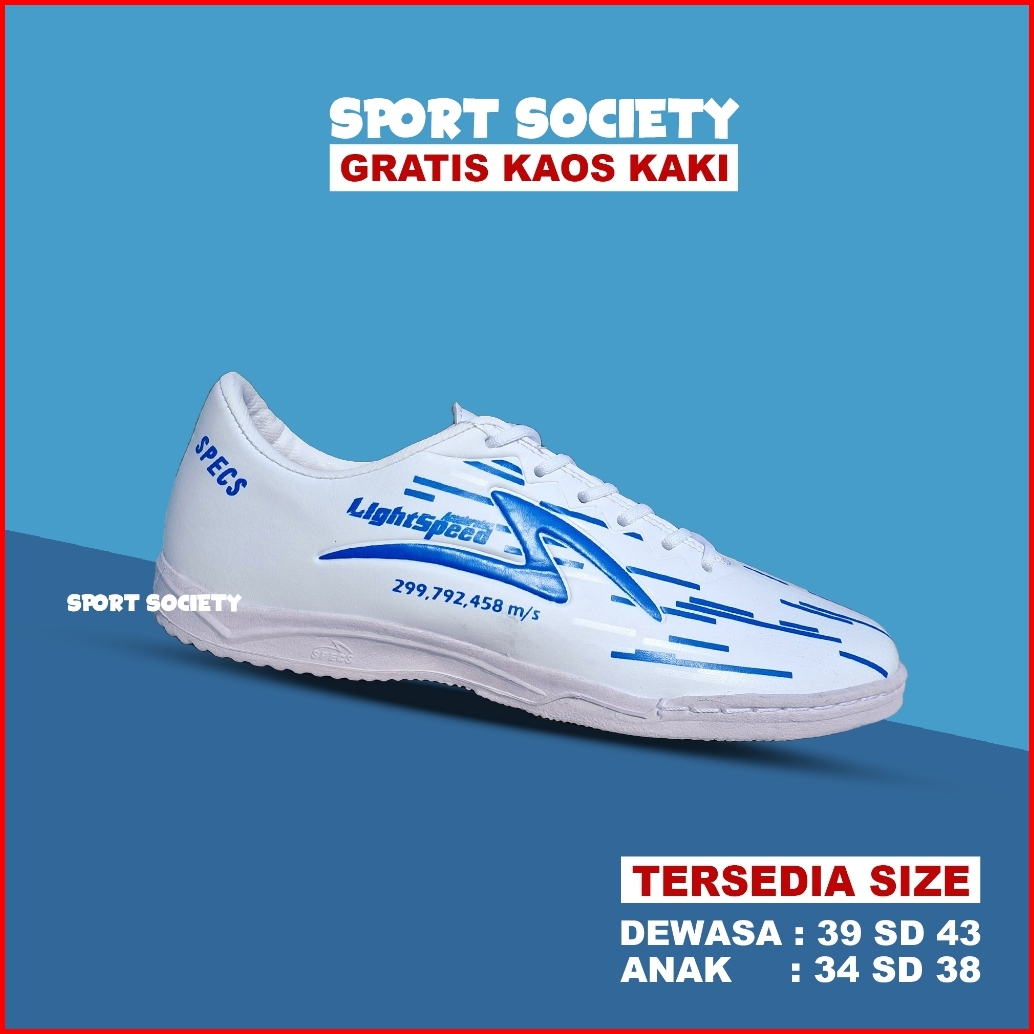 Best Seller Sepatu Futsal Specs Lightspeed Reborn Dewas Anak Laki-laki Premium - Putih Biru