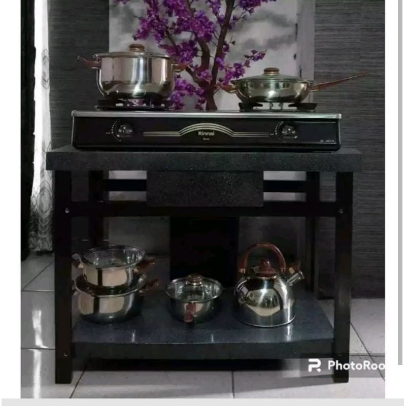 Meja Kompor kayu serbaguna Meja Portable Laci Model Minimalis Modern Warna Hitam Motif Marbel Granit