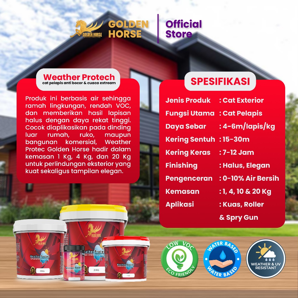 Cat Tembok Exterior Mengkilat Weather Protec Anti Bocor dan Cuaca Extrime 4 kg - 90lden Horse