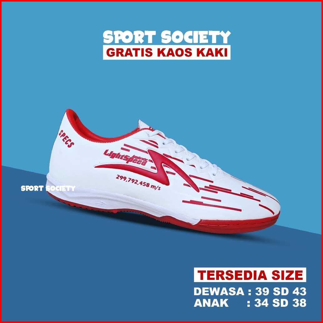 Sepatu Futsal Dewasa Anak Specs Lightspeed Reborn Premium Olahraga Laki-laki - Putih Merah