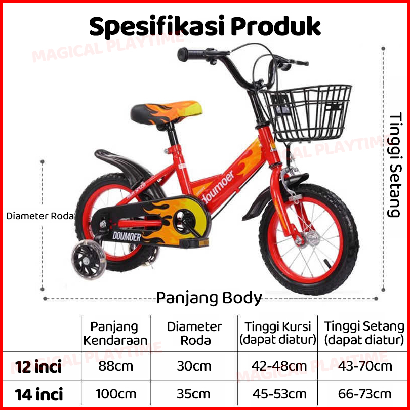 Magical Playtime Sepeda Anak Laki Laki Kecil Dengan Roda Bantu Rangka Baja Karbon Usia 2-7 Tahun