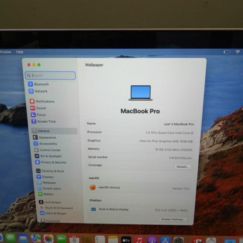 Macbook Pro (13inc 2019) two thunderbolt 3 ports core i5. 16gb/128gb Touchbar