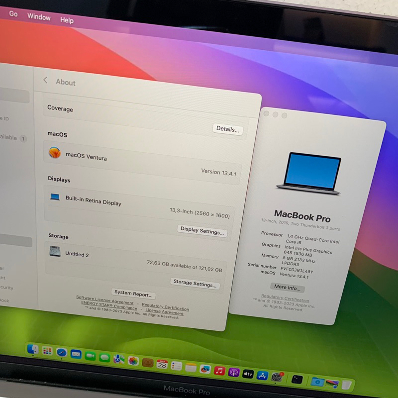 Macbook Pro (13inc 2019) Core i5. RAM 16gb SSD 128gb + Touchbar