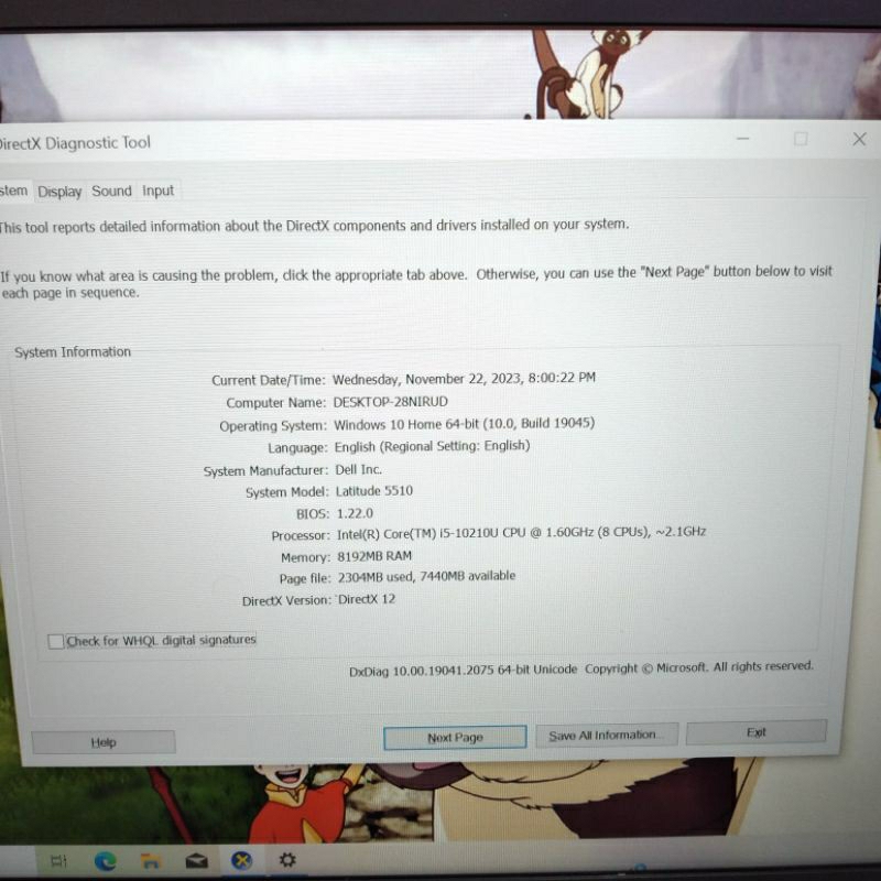 Dell Latitude 5510 core i7 Gen 10, RAM 16gb SSD 256gb. 15inch Full HD