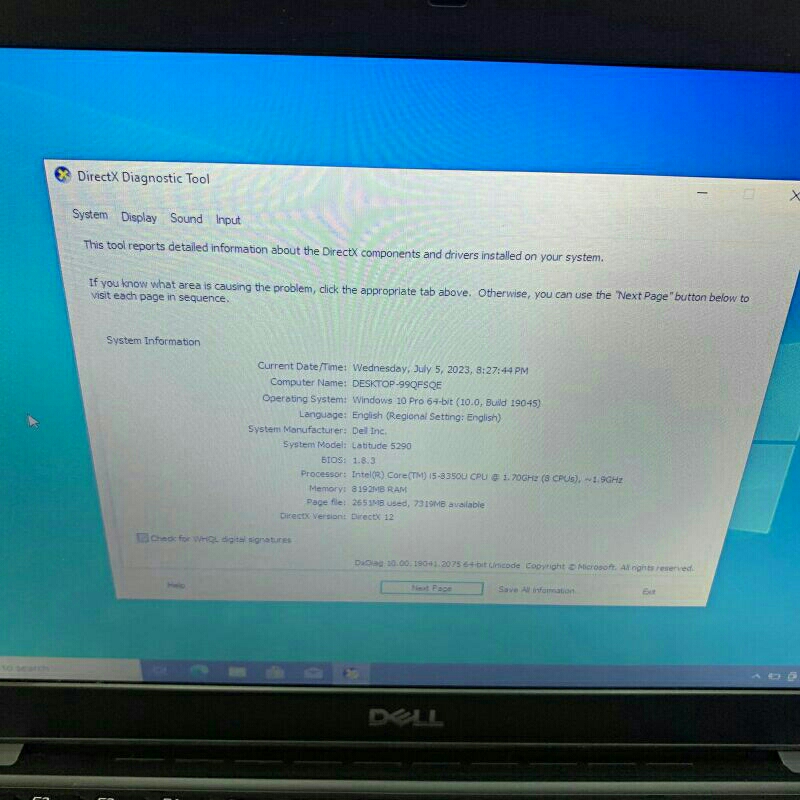DELL LATITUDE 12inch 5290 i5 8/128GB.