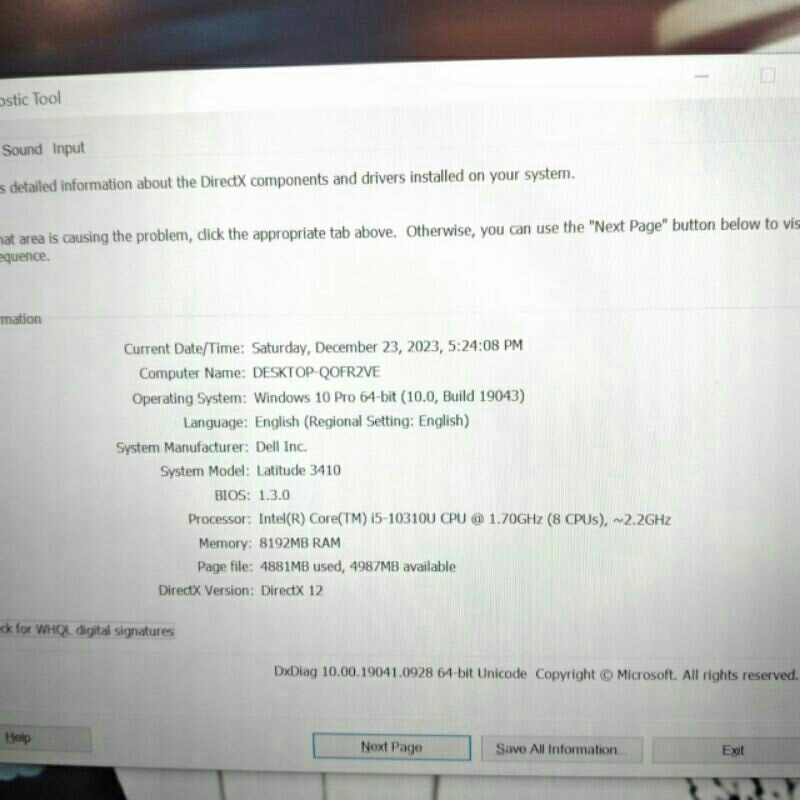 Lptop Dell Latitude 3410 core i5 Gen 10. RAM 16gb SSD 256gb