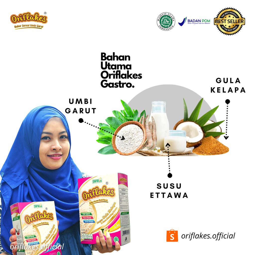 Oriflakes Gastro Sereal Umbi Garut dan Susu Ettawa untuk Maag Asam Lambung 900 gram