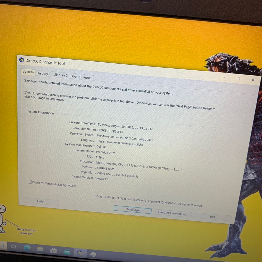 Laptop Dell precision 7520 Xeon RAM 16gb SSD 256gb || 2VGA : Intel Graphics + Nvidia Geforce