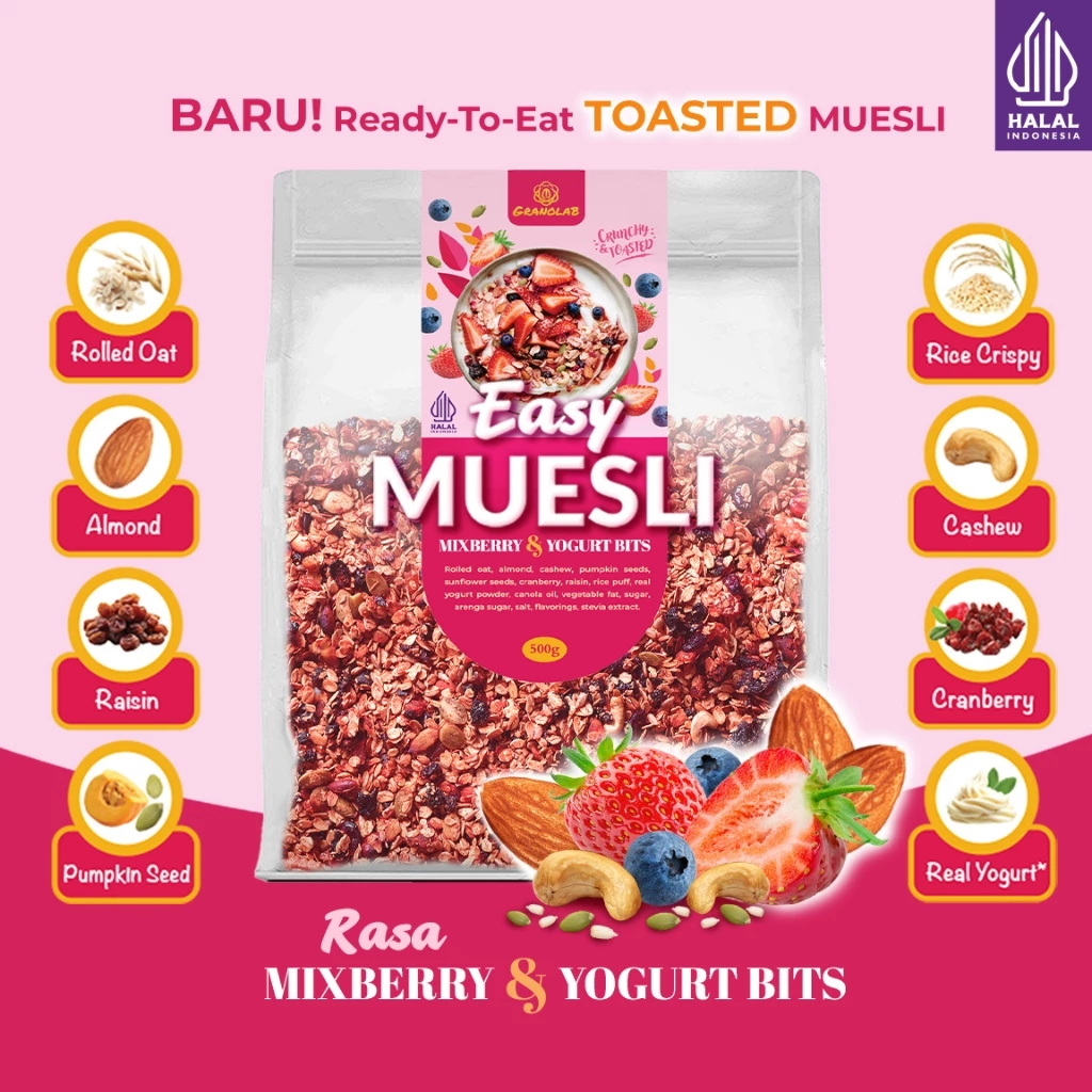 PROMO FREE ONGKIR Easy Muesli Mix Berry Yogurt Bits dan Chocolate Delight | Muesli Panggang Siap Makan - Granolab Muesli