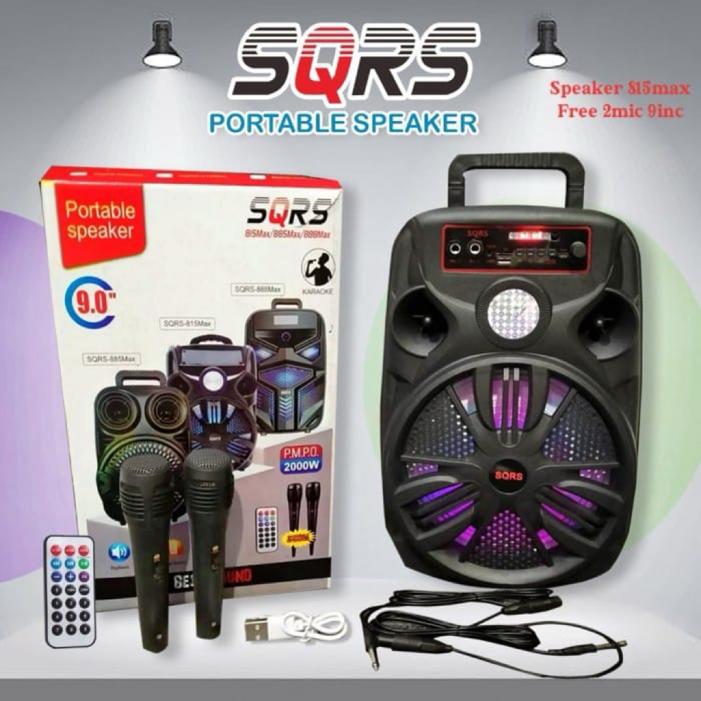 SQRS SPEAKER BLUETOOTH WIRELESS - 9INCH BONUS 2 MIC - KARAOKE SPEKER BLUTOT 2 MIX KAROKE - SPEAKER BLUETOOTH 9" KARAOKE