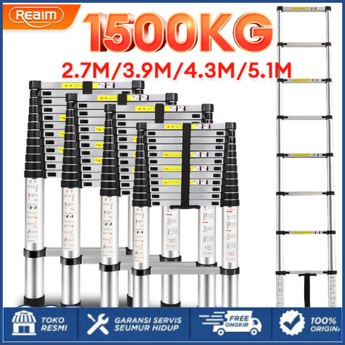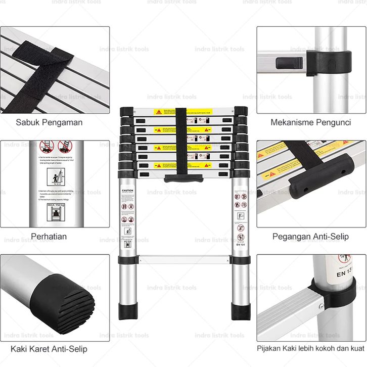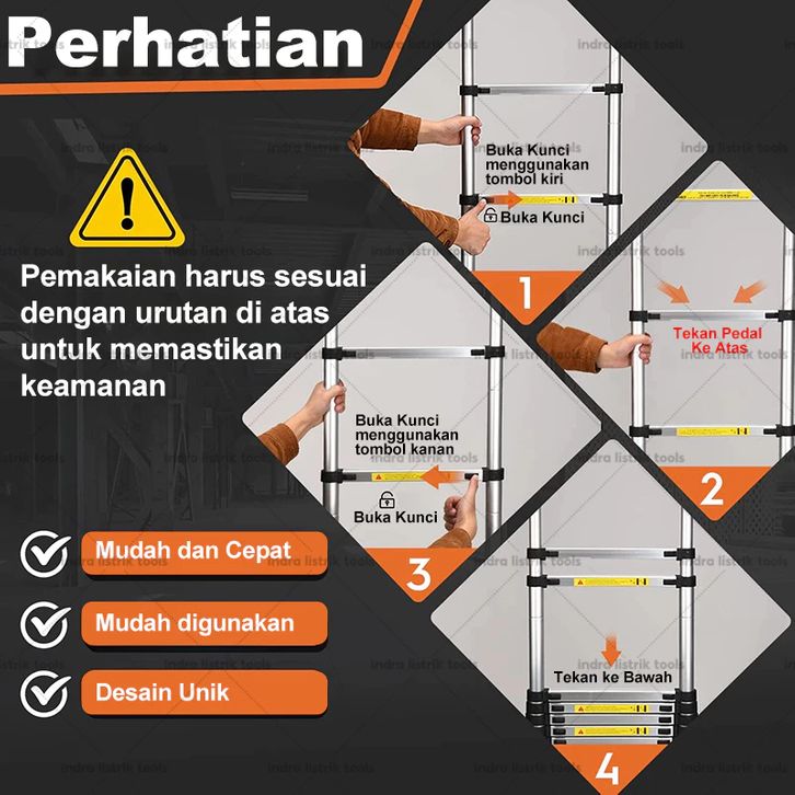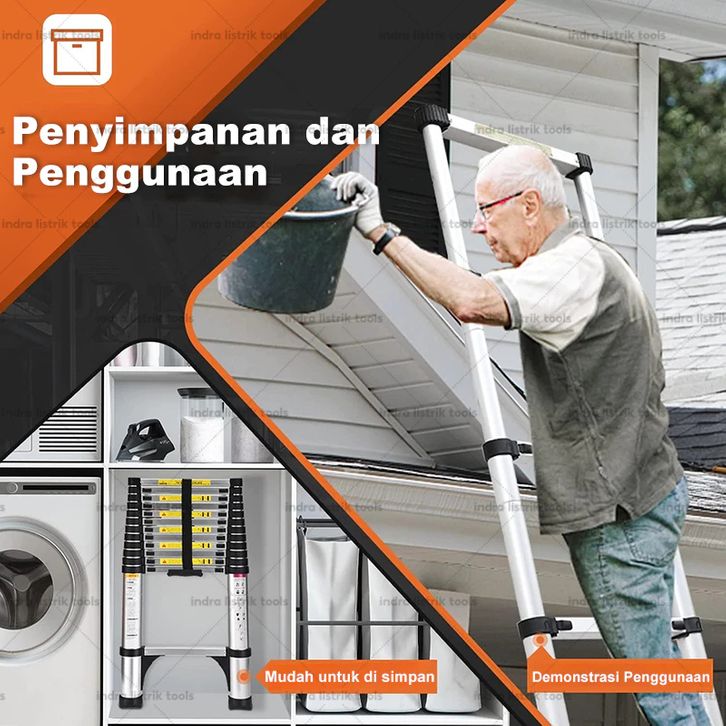 Tangga Teleskopik Aluminium Portabel Tangga Lipat 6 Meter Multifungsi Telescopic Ladder Tangga Lurus Hitam