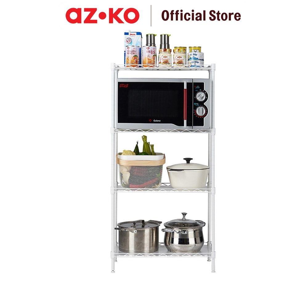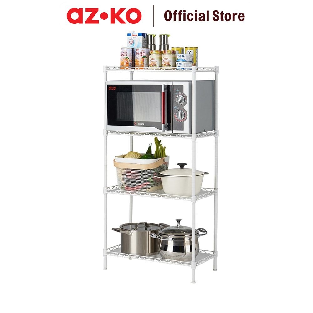 AZKO Stora Rak Besi 4 Tingkat - Putih Metal Rack Rak Serbaguna Rak Penyimpanan Minimalis Organizer Gudang