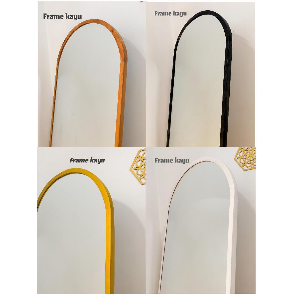 FREE PACKING KAYU Standing Mirror frame kayu oval Cermin Rias Aesthetic Cermin Hias Cermin Kaca Full Body