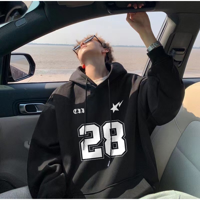 Disneay Hoodie Pria Boxy Putih Sweater Hoodie Tren Retro /Pola Bintang Petir No.28 Baju Club Keren Sweater Pria Jumbo /