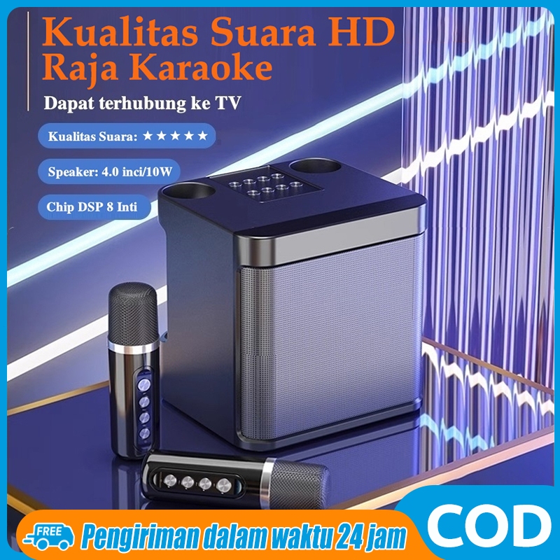 【Menjamin】Speaker bluetooth karaoke Bluetooth Speaker 2 MIC HD sound quality 4.0 inci/10W Aktif Full Bass Subwoofer