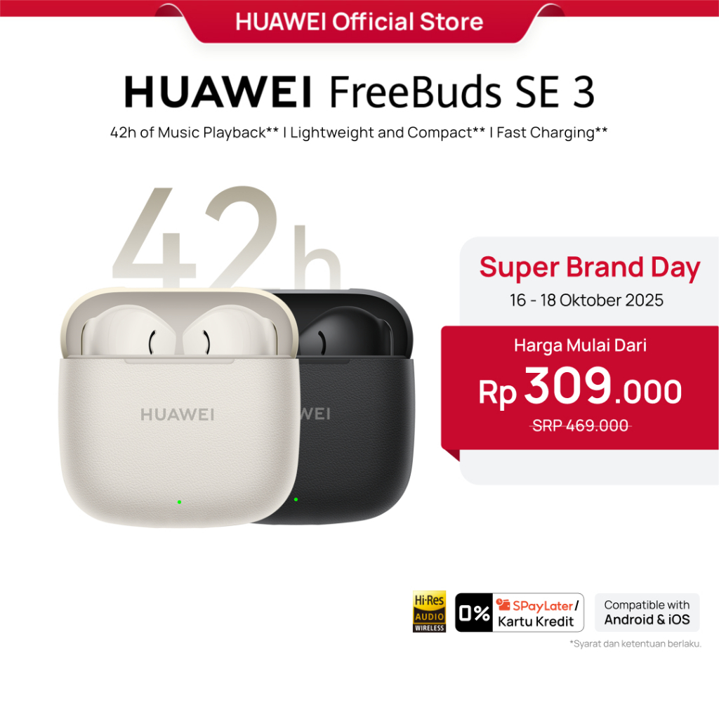 HUAWEI FreeBuds SE 3 Earphone Wireless TWS | Daya Tahan Baterai 42 Jam | Ringan & Ringkas | Pengisian Baterai Cepat