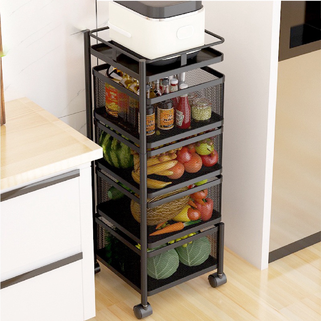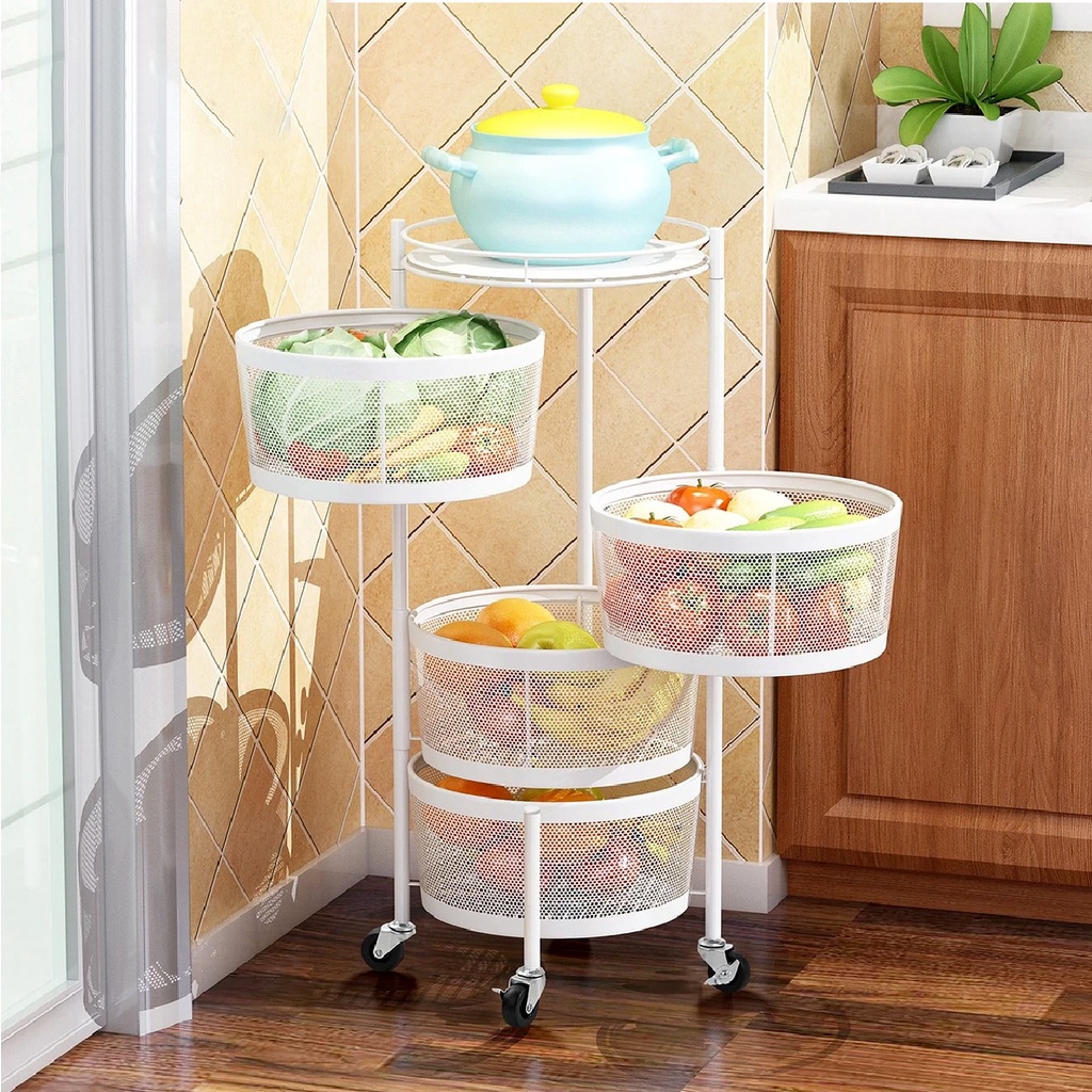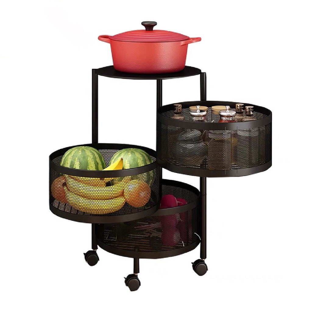 KS Carbon Steel Storage Rak Roda Troli Putar Full Baja Kotak/Bulat Susun Tingkat Serbaguna