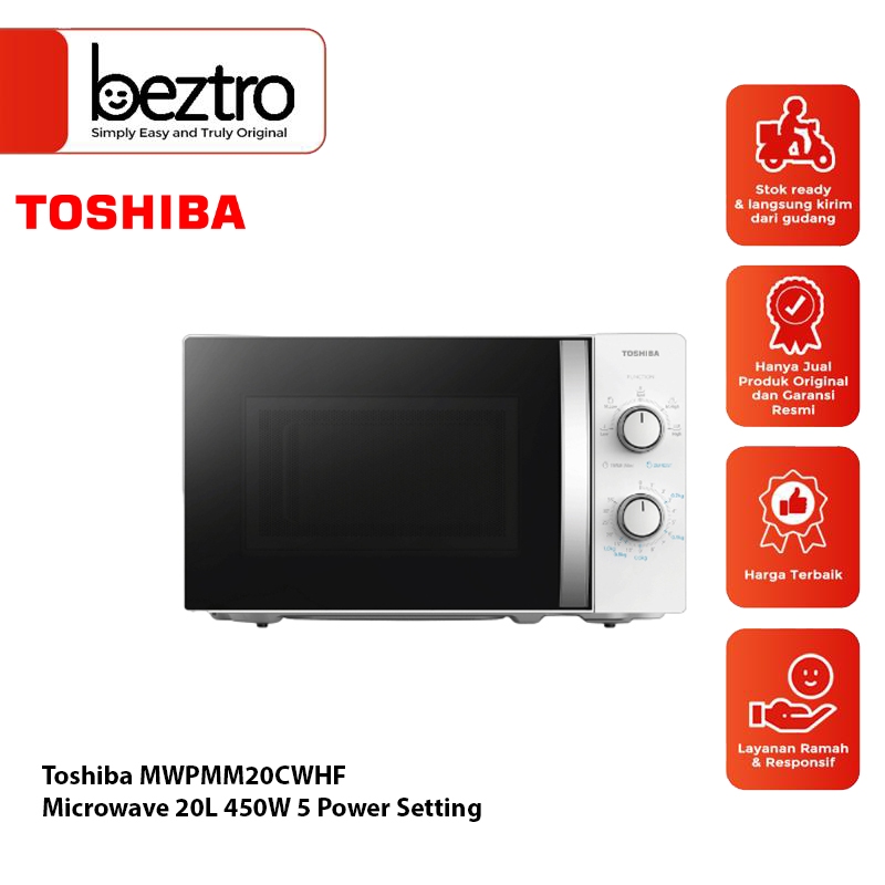 Toshiba MWP-MM20C(WH)-F MWPMM20CWHF – Microwave 20 Liter 450 Watt 5 Power Setting Low Watt