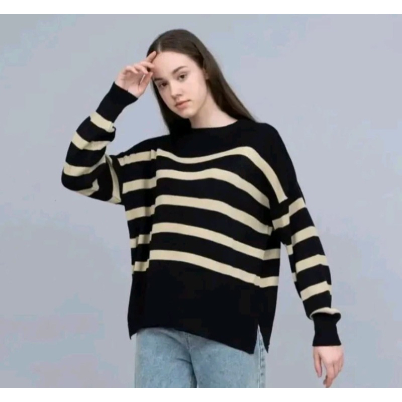 MAUDY SWEATER RAJUT GARIS KNIT KOREA STYLE PREMIUM SIZE JUMBO BB 40kg-90kg // PAKAIAN WANITA DEWASA TERBARU DAN TERLARIS