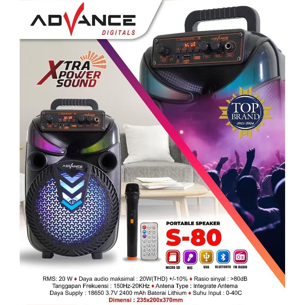 【PROMO】Advance Speaker Bluetooth Portable TWS 8Inch+1xMic Wireless 80