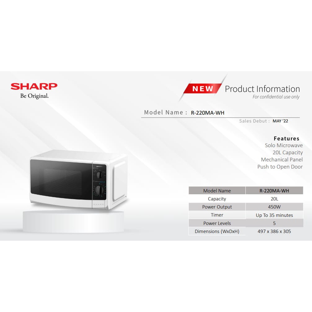 Microwave Oven SHARP 20 Liter - R220MA-WH [ORI100%]