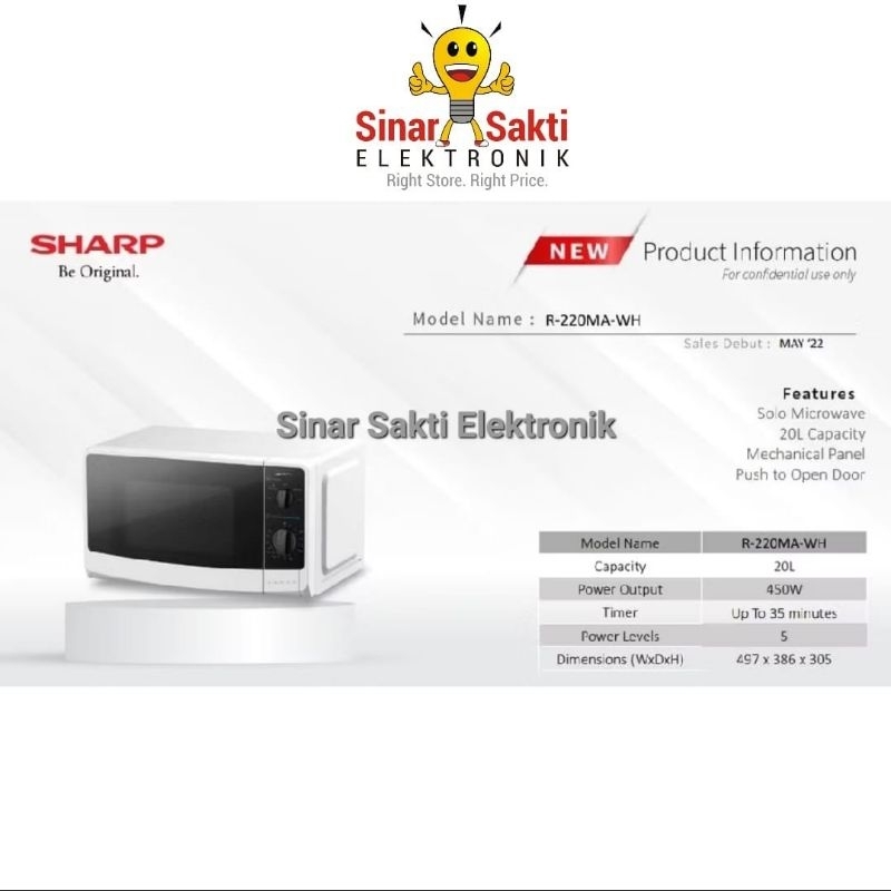 Sharp Microwave Oven R 220 MAWH R220 MA WH R220MAWH R 220 MA 20 Liter 20 Lt 20liter Low Watt Malang