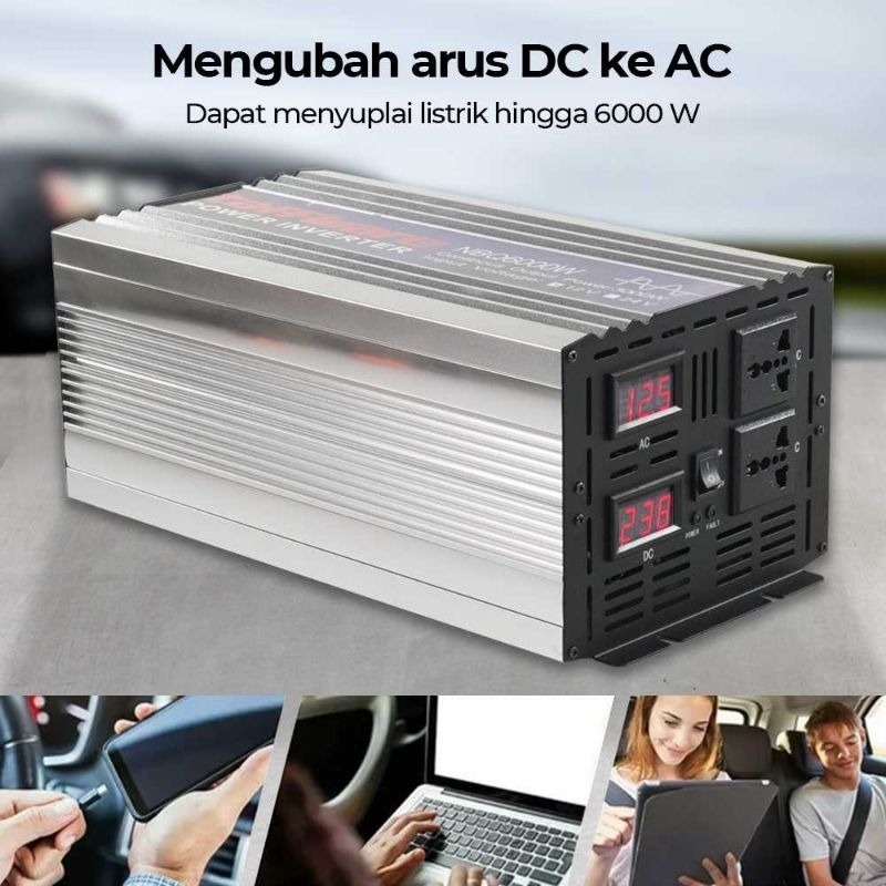 Power Inverter DC ke AC 6000W Pure Sine Wave DC 12V 24V 48V 60V to AC 220V 6000 Watt Inventer Taffware Gelombang Sinus M