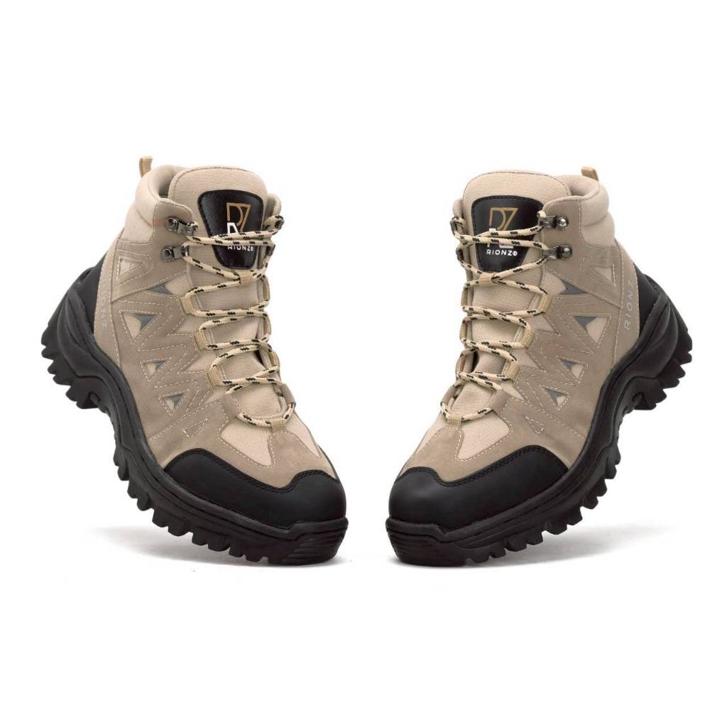 Rionz Cikurai Sepatu Boots Pria Hiking Tracking Outdoor Touring Cream Grey Black