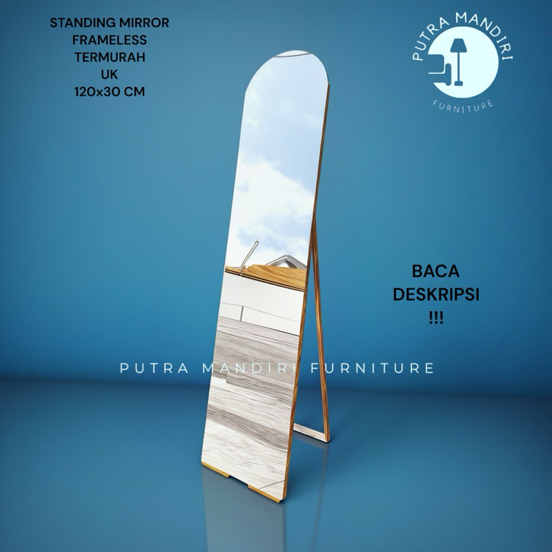 Oval Standing Mirror kaca cermin berdiri aesthetic oval Frameless Termurah UK 120x30 CM