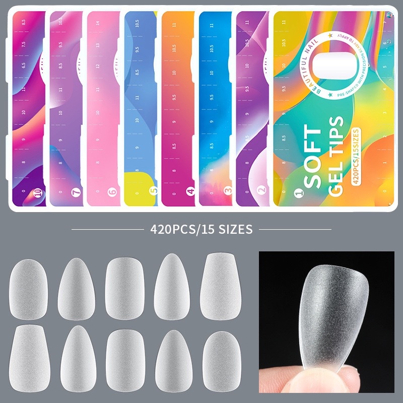 Rainbow Soft Gel Tip Premium 420 PCS Nail Extension Kuku Palsu 15 SIZE