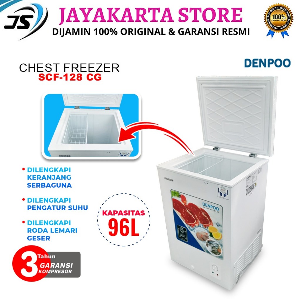 Denpoo Chest Freezer SCF 128 CG ( 96 Liter - 110Liter )