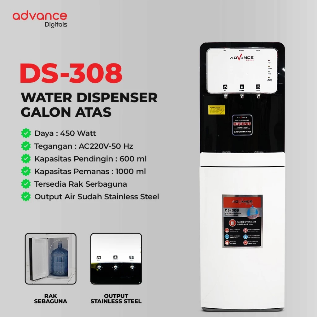 Advance Dispenser Galon Bawah 3 Kran Panas Dingin Hot and Cool - DS308 - FREE ONGKIR Jabodetabek
