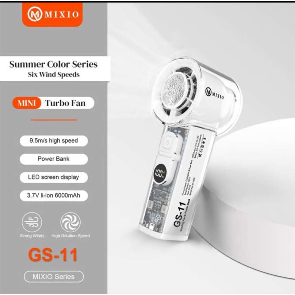 MIXIO GS-11 Kipas AC Cooling Transparant High Speed With Powerbank 6000Mah Fan Portable Kipas Angin Turbo Portable 18000Rpm Es Pendingin