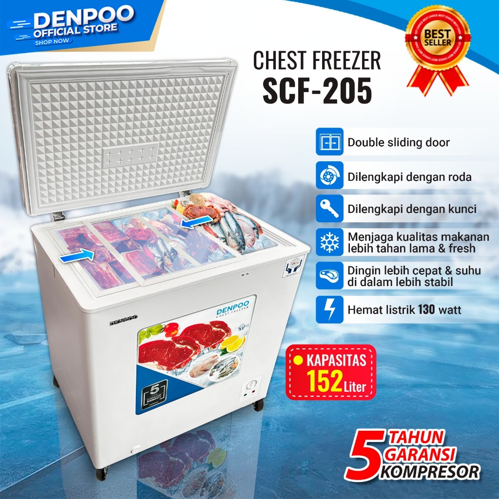 DENPOO Chest Freezer SCF 205 CG Kapasitas 157 Liter