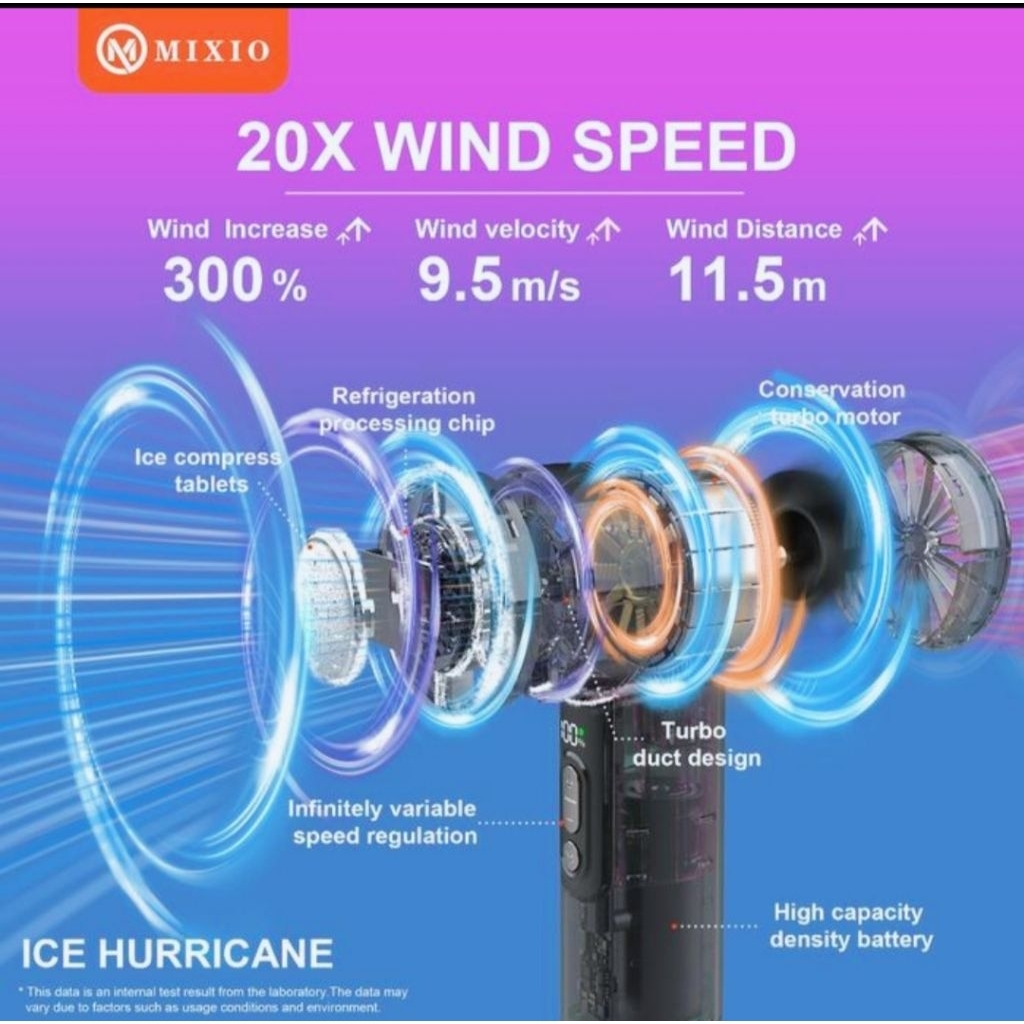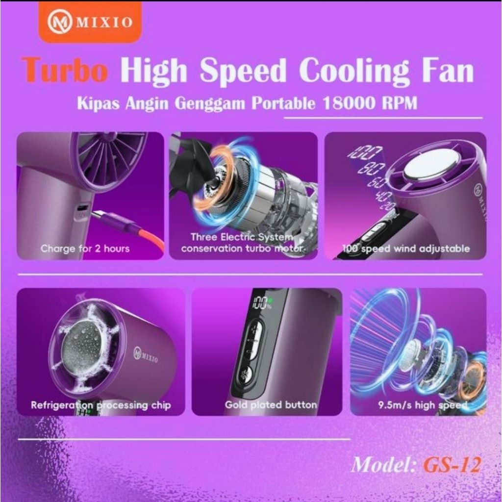 MIXIO GS-12 High Speed AC Cooling Fan Portable Kipas Angin Turbo Portable 18000RPM 5000Mah - Aurora Purple