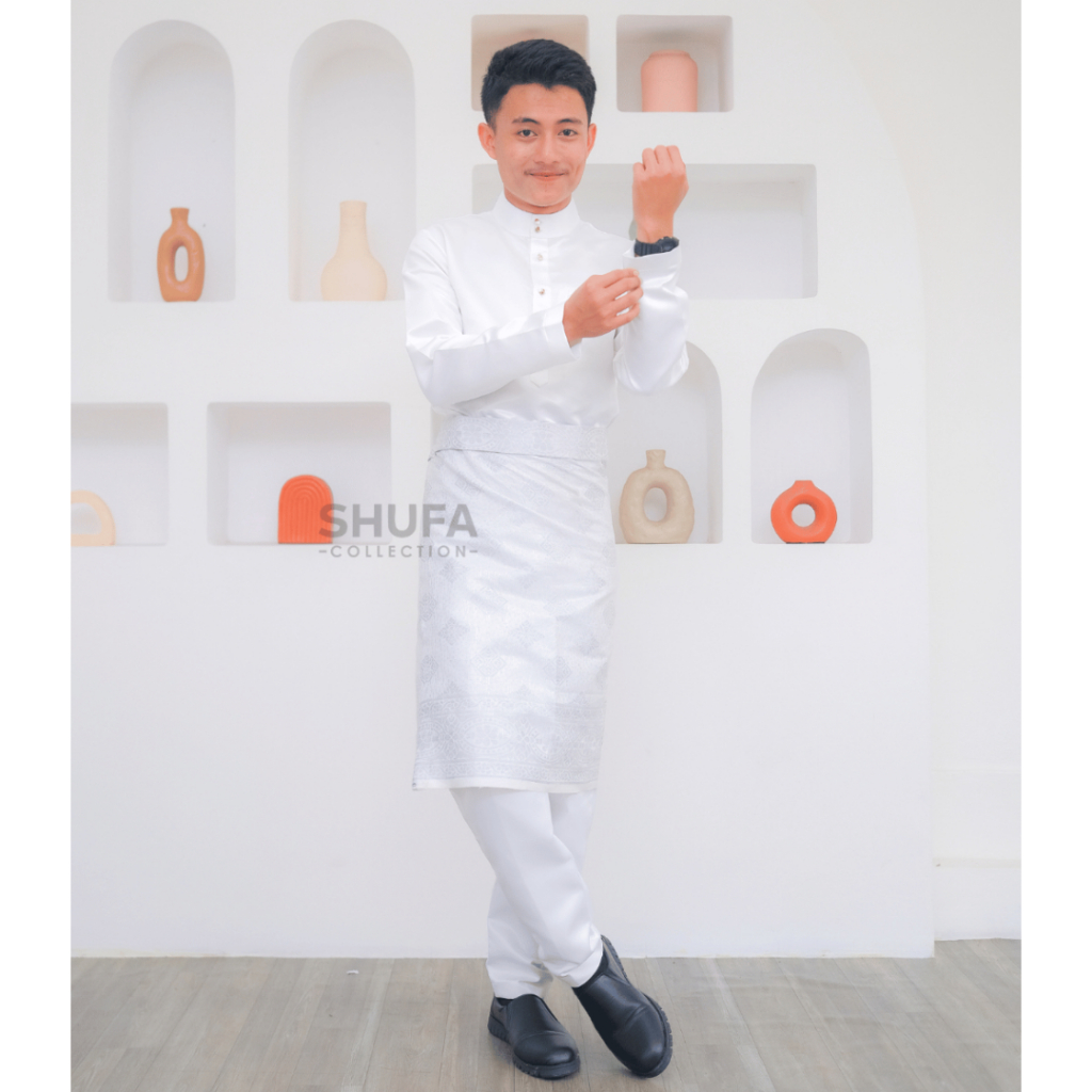 Baju Akad Melayu Pria Cekak Musang Setelan Muslim Kurung Teluk Belanga Putih Bahan Bridal