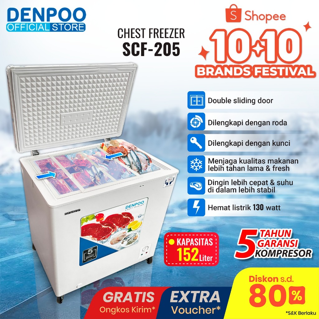 Denpoo Chest Freezer SCF 128 CG ( 96 Liter - 110Liter )