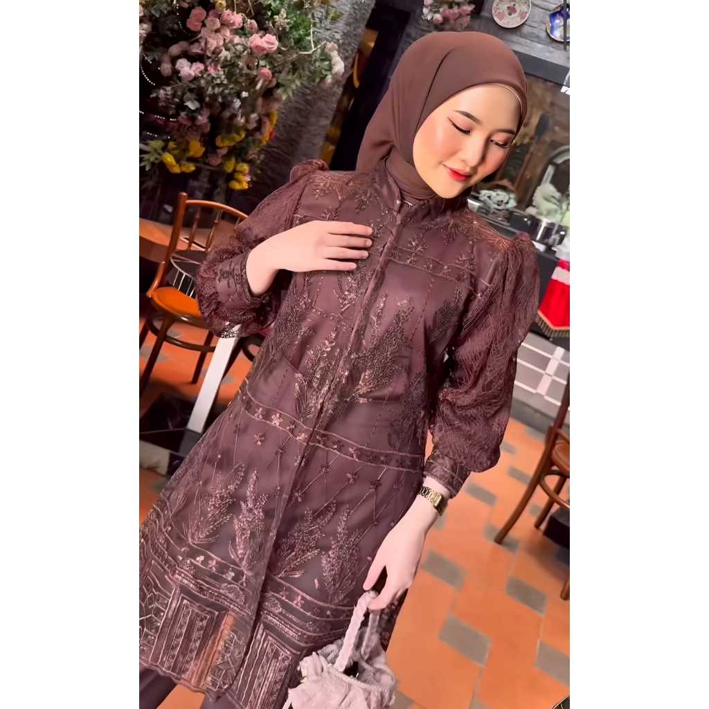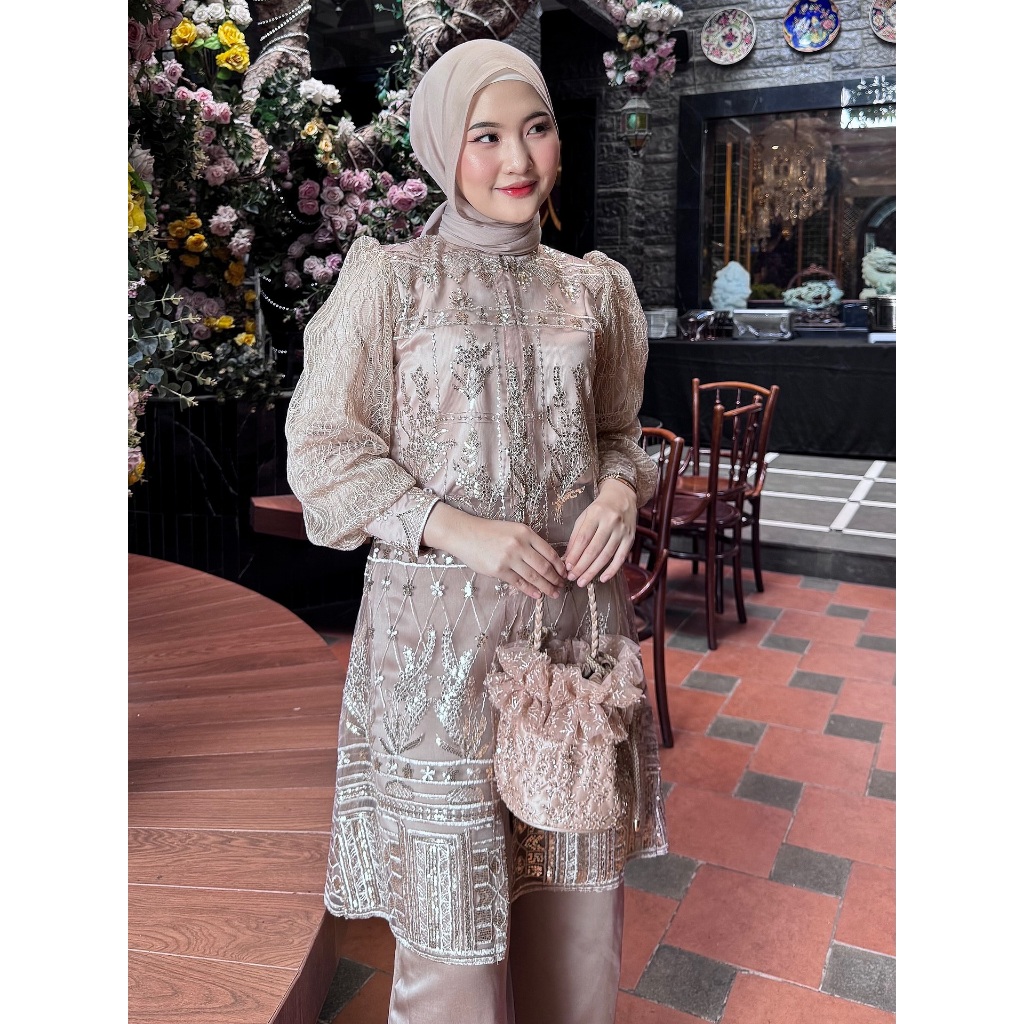 [Mall] Sakura Set 3In1 Outer Brukat Premium Setelan Wanita Tunik Brokat Kondangan Oneset Far Moslemstore