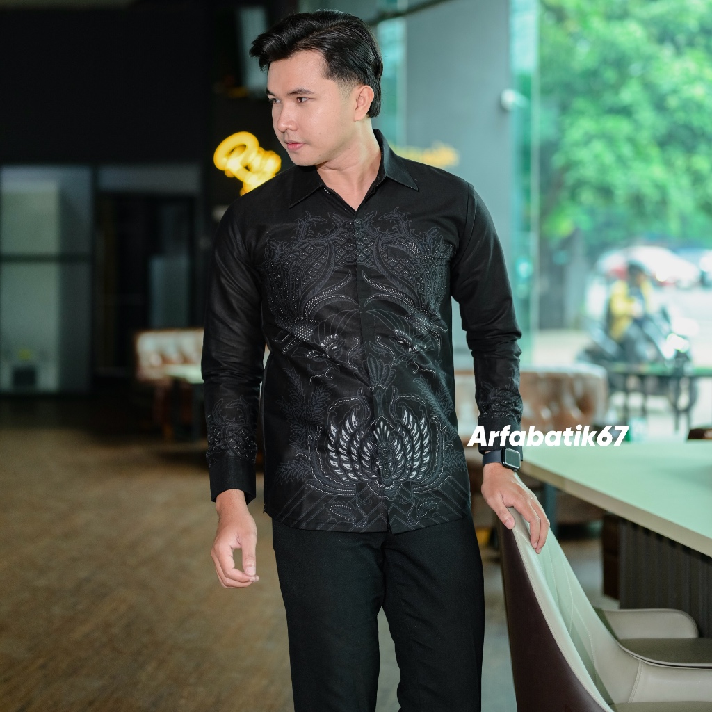 [Mall] Slimfit Mahkota Hitam Kemeja Batik Slim Fit Pria Lengan Panjang Dan Lengan Pendek Katun Premium Lapis Furing Hero By Arf