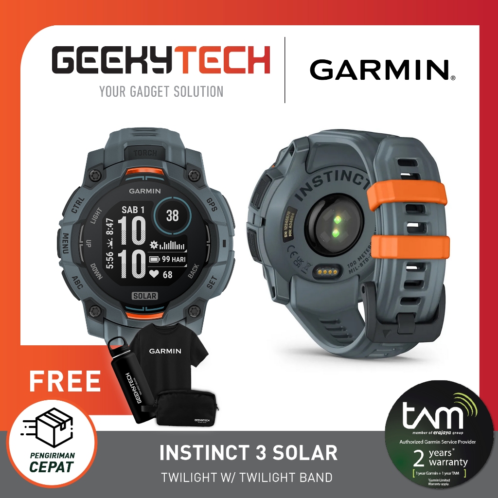 Garmin Instinct 3 SOLAR GPS Smartwatch - Garansi RESMI TAM