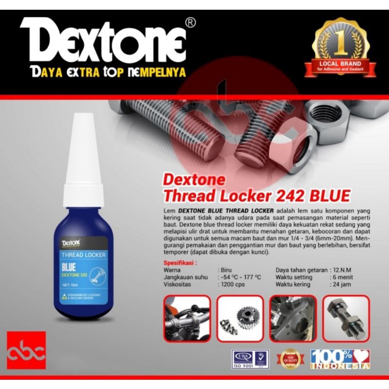 LEM DEXTONE THREAD LOCKER 10 ML 242 BIRU - 271 MERAH LEM BAUD BAUT MUR TRIMPOT UNTUK MUR 1/4-3/4(6MM-20MM) BERKUALITAS