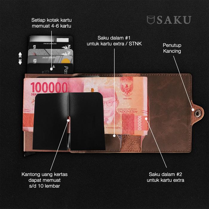 DEFECT SAKU DOMPET KARTU PRIA SMART WALLET CARD HOLDER RFID KULIT BLCK - BLACK, SINGLE