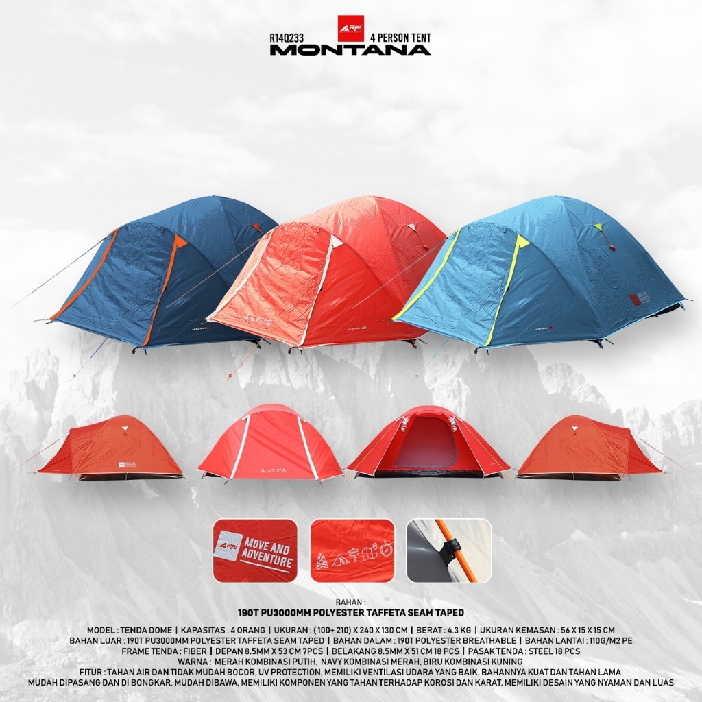 Tenda Camping Montana Kapasitas 4 Orang Arei Outdoorgear / tenda / tenda camping / tenda jualan / tenda anak