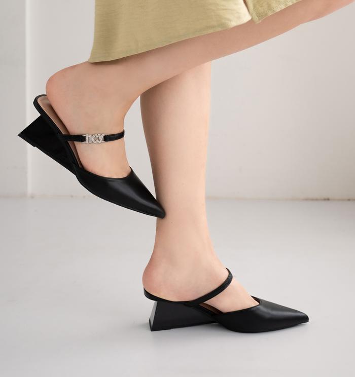 NCY SHOES SEPATU WANITA CASSIDY MULES HEELS 5CM WARNA HITAM - HITAM, 36