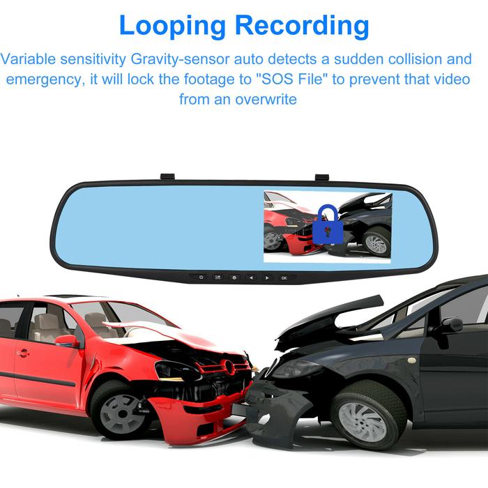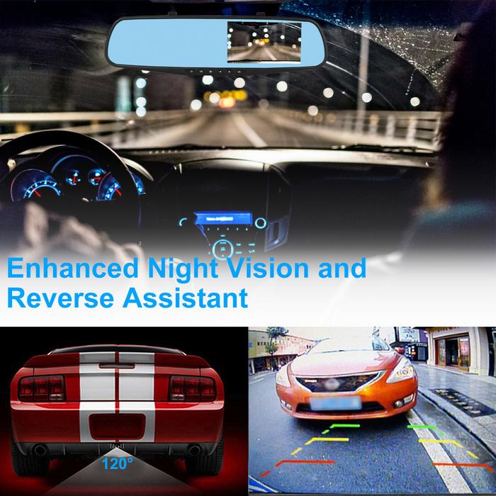 KACA SPION CAMERA DASHBOAR REAR DISPLAY DVR DUAL KAMERA DASHCAM 1080P 4.3 INCH KAMERA DASBOR PEREKAM MENGEMUDI MOBIL LENSA GANDA DEPAN BELAKANG 1080P 170 DERAJAT CAR - CC170