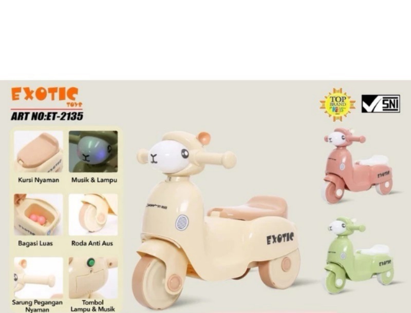 Exotic ET 2135 Ride On Vespa Domba Karakter Lucu Ada Lampu Dan Musik Mainan Motor Motoran Anak